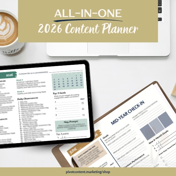 Eliminate HOURS of brainstorming, planning, and redundant communication with the 2026 All-in-One Content Planner — a comprehensive planning system that helps small business owners, solopreneurs, and creators organize a full year of content AND track their performance.